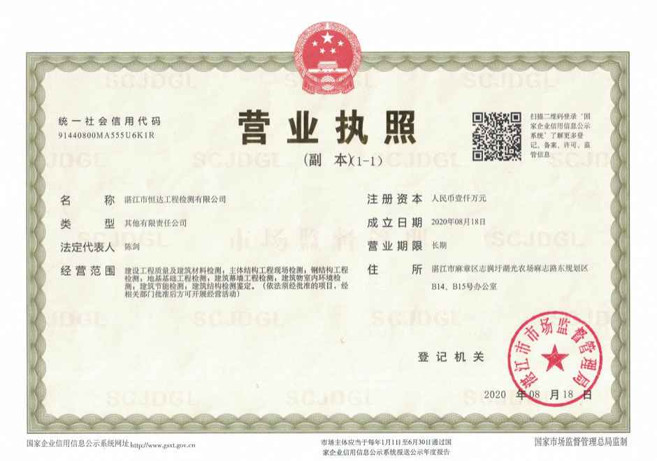 于2020年8月成立于湛江市。公司检测范围广,类别多,基本涵盖了房屋建筑和市政基础设施工程的全部领域(工程材料、工程实体、工程环境),2 个领域具备 17 个类别 1241 个参数的检测能力。主要检测业务包括:建设工程质量及建筑材料检测;主体结构工程现场检测;钢结构工程检测;地基基础工程检测;建筑幕墙工程检测;建筑物室内环境检测;建筑节能检测;建筑结构检测鉴定等。